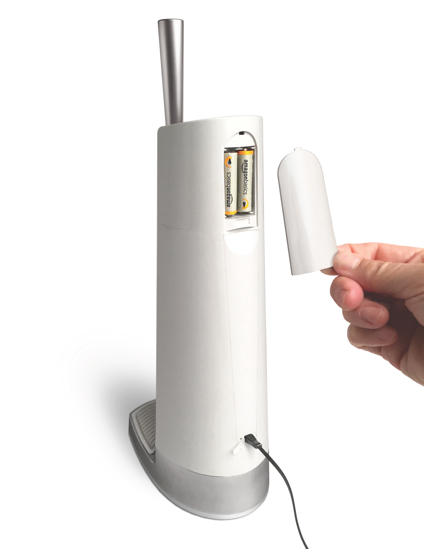 • Plug it in or insert 2 AA batteries (not included) to take DraftPour anywhere. No CO2 or nitro cartridges required